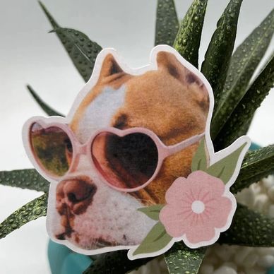 Your favorite photo of your furry friend becomes a super cute, completely custom decal ready to stick wherever you please. It's the *paw*fect accessory for your phone, laptop, emotional support water bottle, and any other smooth surface you can think of.